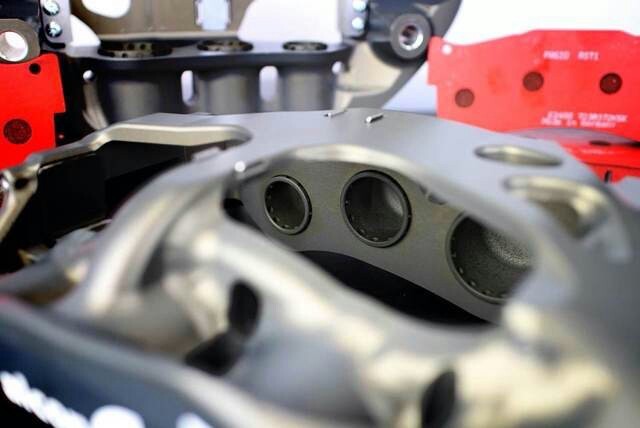 英國(guó)ALCON出品新款CAR95競(jìng)技用卡鉗套裝,采用鋁合金材質(zhì)CNC整體切割生產(chǎn),內(nèi)置油管設(shè)計(jì),鋼性、耐用度及散熱效能強(qiáng)勁!配合355mmX35.5mm競(jìng)技剎車碟和厚達(dá)25mm高性能剎車皮,專利的“閃電”形坑槽設(shè)計(jì),有效保持皮與碟的接觸面并能及時(shí)帶走多余剎車粉塵,絕對(duì)是專業(yè)賽車的信心之選!