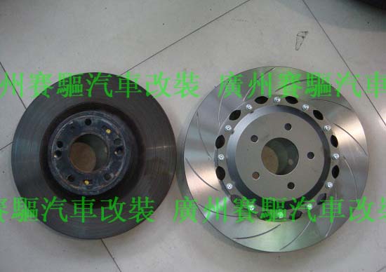 原裝剎車碟是一體的,ap剎車碟是分離式的,在兩個對比之下,有明顯的不一樣。