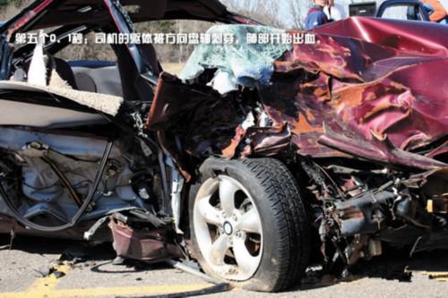 方向盤軸、車門斷裂后擠壓著司機(jī),但這已經(jīng)不會(huì)再對(duì)司機(jī)造成任何痛苦——因?yàn)樗緳C(jī)已經(jīng)死亡。