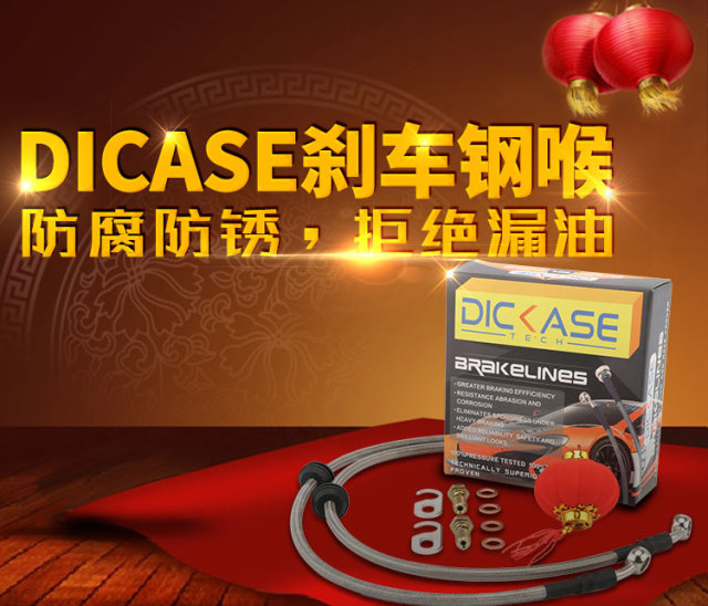 剎車鋼喉是通過傳送剎車油,推動剎車卡鉗活塞工作的一個重要部件。大多數的原車剎車鋼喉都是橡膠制成的,所以在長時間的使用后,會出現老化,漏油等問題。通常建議2到3年對剎車鋼喉進行檢查,確保駕駛安全。 很多人錯誤地認為原車的剎車鋼喉是廠家原配的,符合相應法規和標準的,應該選擇原廠剎車鋼喉。其實不然,原車的鋼喉由于成本問題,在制作工藝,原材料選擇等問題上就會有所取舍,最終的成品也只是能滿足車輛一般制動要求的。所以在更換剎車鋼喉的時候,我們比較建議選擇專業的高性能剎車鋼喉,例如DICASE。