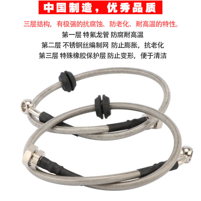 而且專業品牌的鋼喉在防腐防銹、抗老化方面有更出色的表現。DICASE剎車鋼喉采用的是三層防護結構,特氟龍塑料的內芯+不銹鋼絲編織保護網+特殊配方的PVC外橡膠保護層。在柔韌性、耐高溫性、耐化學性、低膨脹性等方面都遠超一般的剎車鋼喉,可以折彎打結,耐磨耐用。