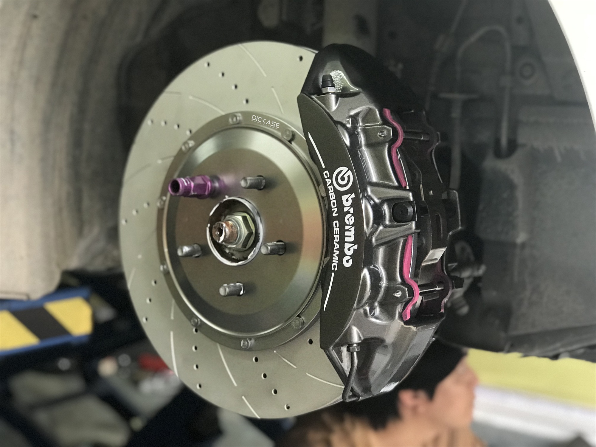 馬自達阿特茲改裝升級brembo V6六活塞搭配DICASE380*34 mm孔線碟DICASE套裝。