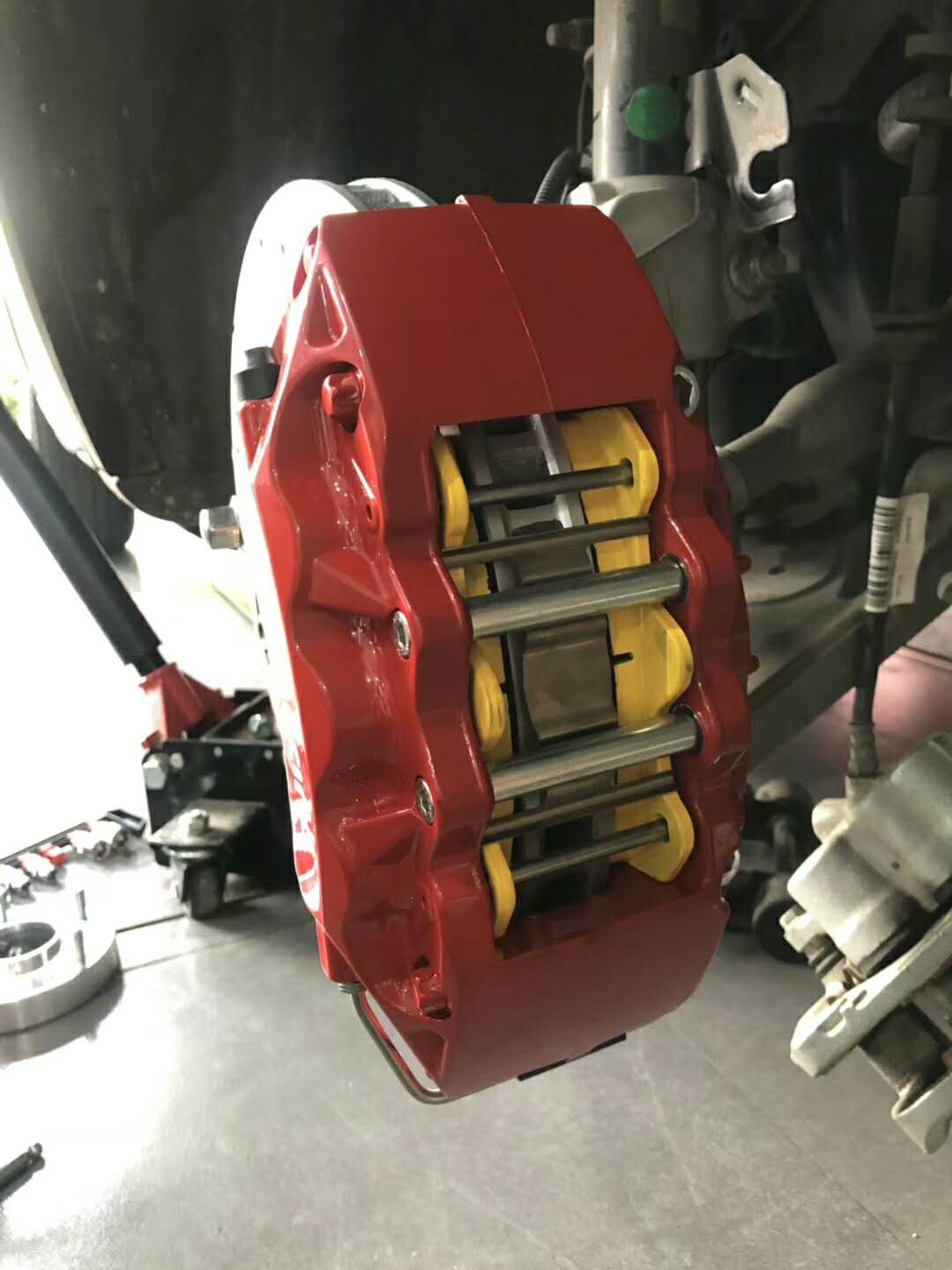 車主選擇在我們這改裝剎車套裝,AP9040六活塞剎車卡鉗套裝,拭目以待它的剎車配置和裝車效果: