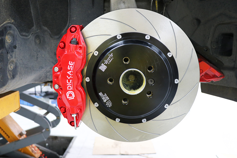 寶馬5系升級DICASE A61六活塞剎車套裝,車主在升級dicase卡鉗之前,就花了不少錢去升級了一套Brembo六活塞卡鉗,但剎車時有明顯的剎車抖動的情況,為了解決這個問題,車主打算更換我們dicase剎車套裝試試。