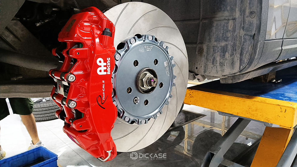 做為一臺海王級別的座駕,只載一個妹子顯然是不夠的,再怎么說也得有15-20個吧,實在不行最少也得一個頂15你說是吧,為了妹子的安全著想,所以車主找到了我們,準備給它換上一套強勁有力的大六活塞卡鉗ap9560,這下不管是1頂15還是15個都不在話下。