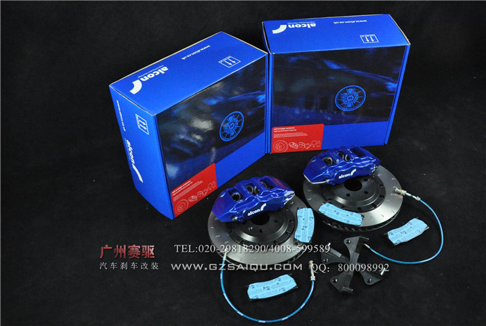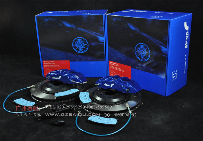 英國ALCON CAR97高性能六活塞競技剎車系統套件包含:ALCON CAR97六活塞競技版剎車卡鉗一對、ALCON原裝剎車盤及合頭各一對、ALCON原裝剎車皮兩對,原裝鋼喉一對、航空鋁材橋馬一對。