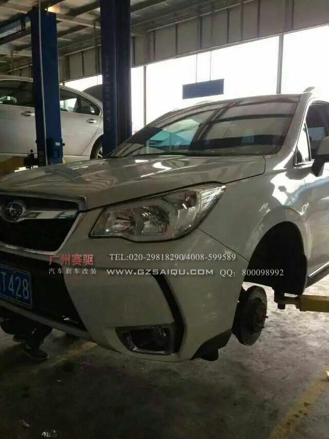 斯巴魯森林人剎車升級英國AP5200大四活塞剎車套裝安裝圖片